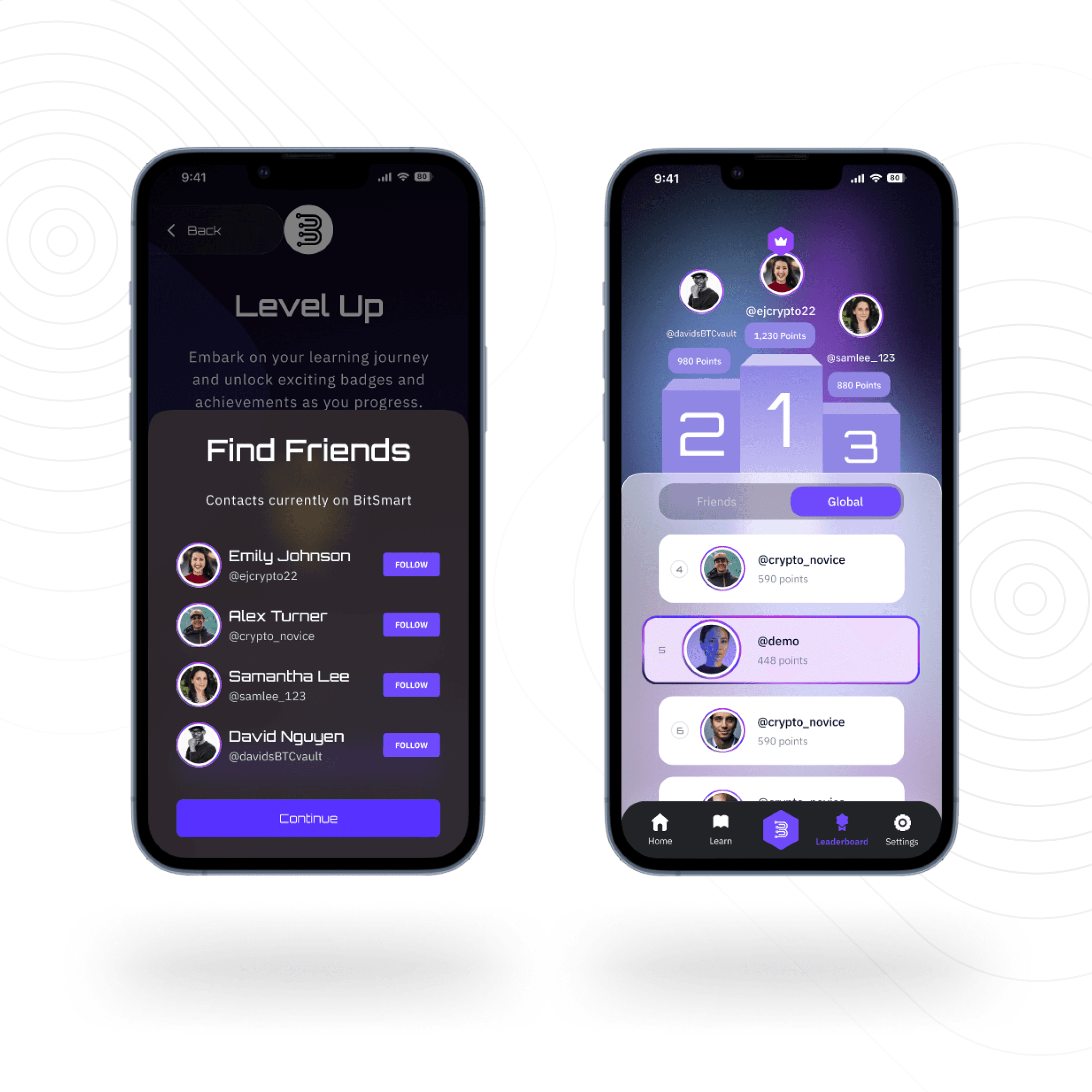 With BitSmart, users can turn crypto education into an enjoyable, social experience. The app’s blend of learning, quizzes, and a competitive leaderboard fosters motivation and sustained engagement. This project highlights my ability to merge complex subject matter with thoughtful UX design, transforming a potentially intimidating topic into an accessible, community-driven platform for growth.