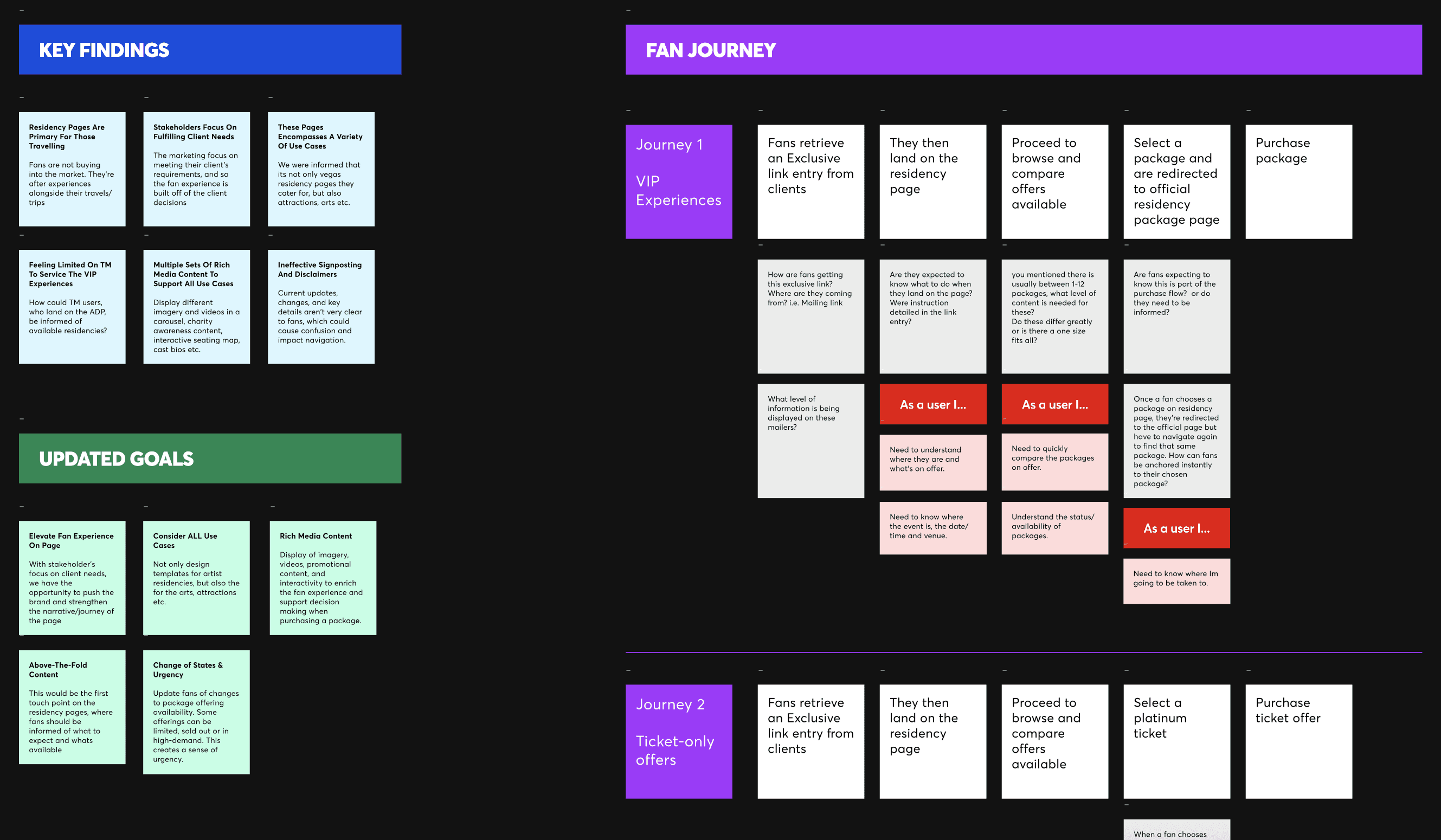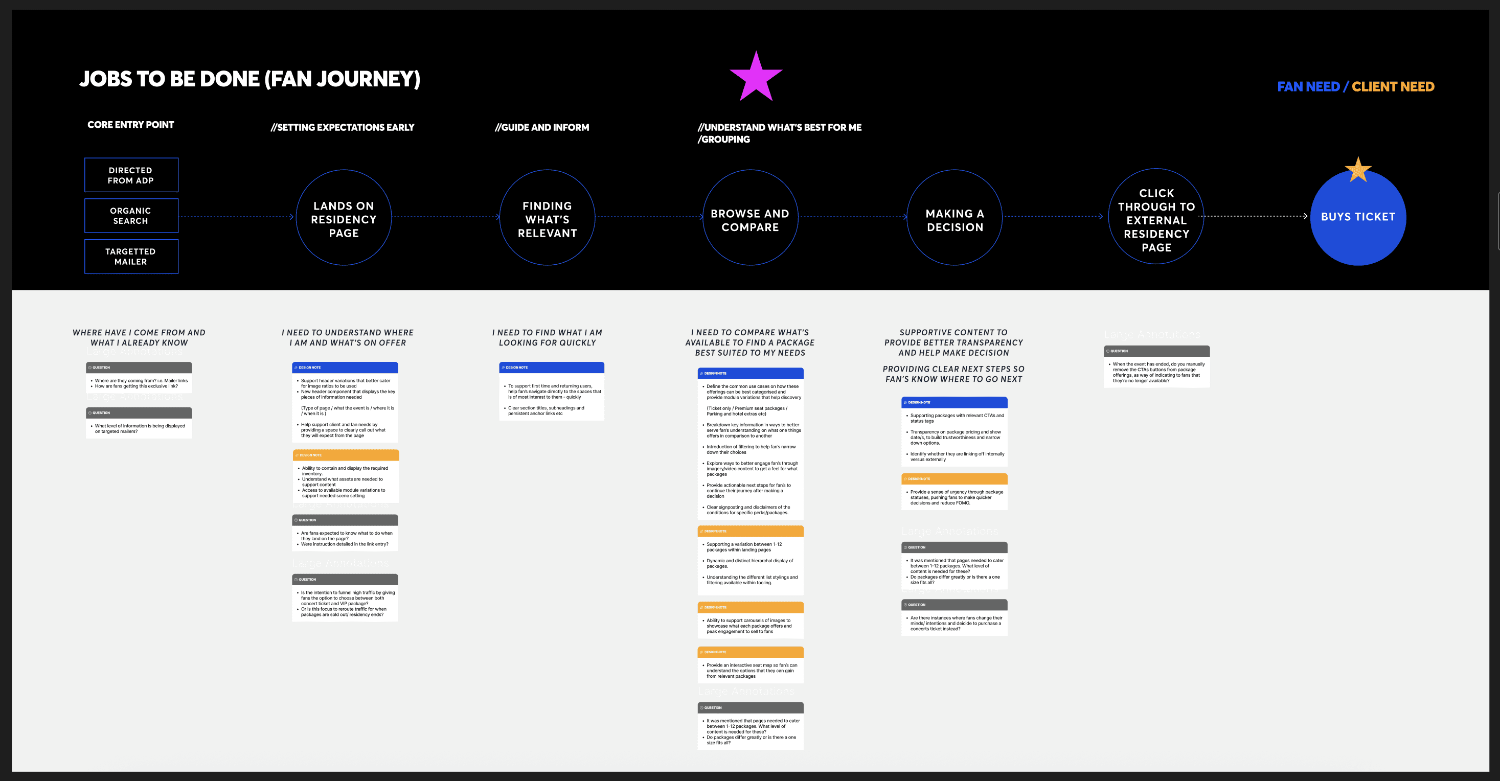 Fan journey map to step back from individual templates and understand how splash pages function within the wider decision-making flow. From entry point through browsing and comparison to conversion, it helped us identify critical friction points and refocus the design around supporting confident package comparison.